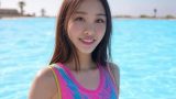 トップスの丈が短いイチゴ柄のセーラー服を着ていて、へそを出している。